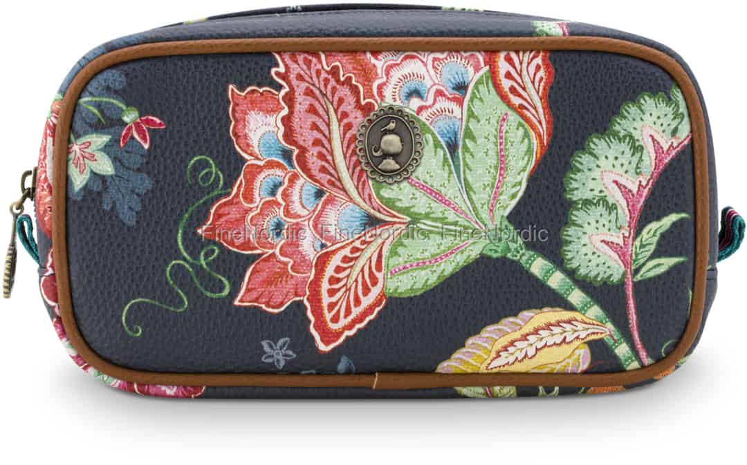 Bewahren Sie die Kosmetikprodukte, die Sie täglich benutzen, ganz sicher in diesem kleinen Kosmetikbeutel Jambo Flower Blue von Pip Studio auf. Die blaue Kosmetiktasche ist mit exotischen Blumen verziert und dazu auch mit dem Pip Studio Emblem versehen. Dieser kleine Kulturbeutel besteht aus wasserabweisendem Satin und hat Kunstlederpaspeln. Sie können ihn ganz einfach auf Ihr Badezimmerregal stellen oder aber auch auf Reisen mitnehmen. Der Satin Kosmetikbeutel kann gut mit den anderen Jambo Flower Badezimmerprodukten von Pip Studio kombiniert werden.