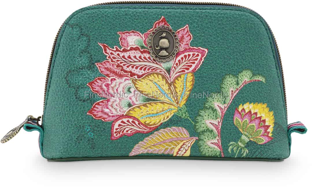 Bewahren Sie Ihr Make-up sicher in dieser gut aussehenden kleinen Kosmetiktasche Jambo Flower Green von Pip Studio auf. Der grüne Kulturbeutel ist mit exotischen Blumen und einem emaillierten Pip Studio Emblem verziert. Sie können ihn leicht an seinem Messingreißverschluss öffnen und schon sehen die verschiedenen Innentaschen, in denen Sie Ihre Schönheitsartikel schön organisieren können. Die Kosmetiktasche besteht aus wasserabweisendem Kunstleder und das Futter ist ebenfalls wasserabweisend. Der kleine Kosmetikbeutel kann problemlos in einer Handtasche oder einer Reisetasche aufbewahrt werden, falls Sie die Nacht woanders verbringen möchten. Das hübsche grüne Muster der Jambo Blume ist auch auf anderen Toilettenartikeln zu sehen, welche Sie alle in unserem Webshop finden können.