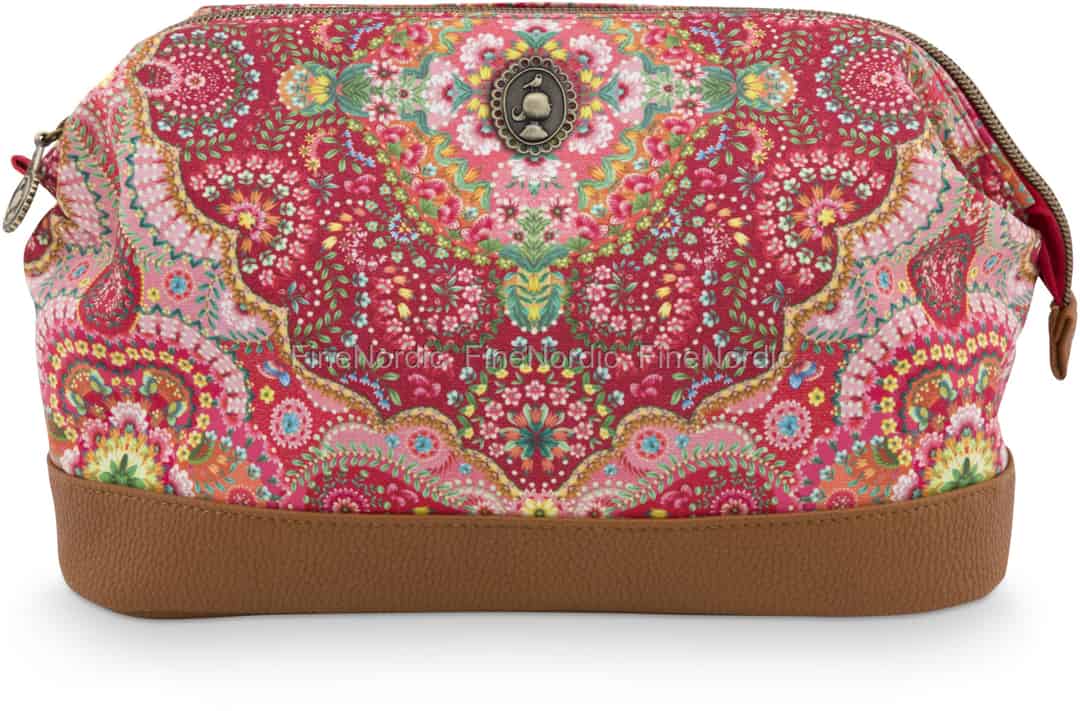 Möchten Sie Ihre Make-up- und Schönheitsartikel sicher an einem Ort aufbewahren, anstatt sie in einer Schublade zu verteilen? Dann könnte diese gut aussehende Kosmetiktasche Moon Delight Red von Pip Studio Ihr Interesse wecken. Diese große Kosmetiktasche ist mit einem farbenfrohen Blumenmuster verziert, bei dem Rottöne das Design dominieren. Auf der Vorderseite befindet sich das Pip Studio Logo Emblem. Oben entlang der Beutels befindet sich ein praktischer Reißverschluss. Der rote Kulturbeutel besteht aus wasserabweisendem Satin und ist mit Kunstlederpaspeln besetzt. Er ist außerdem auch ein praktisches Reisetäschchen nur für Ihre Schönheitsartikel, sowie ein schöner Aufbewahrungsbeutel für auf Ihr Badezimmerregal.