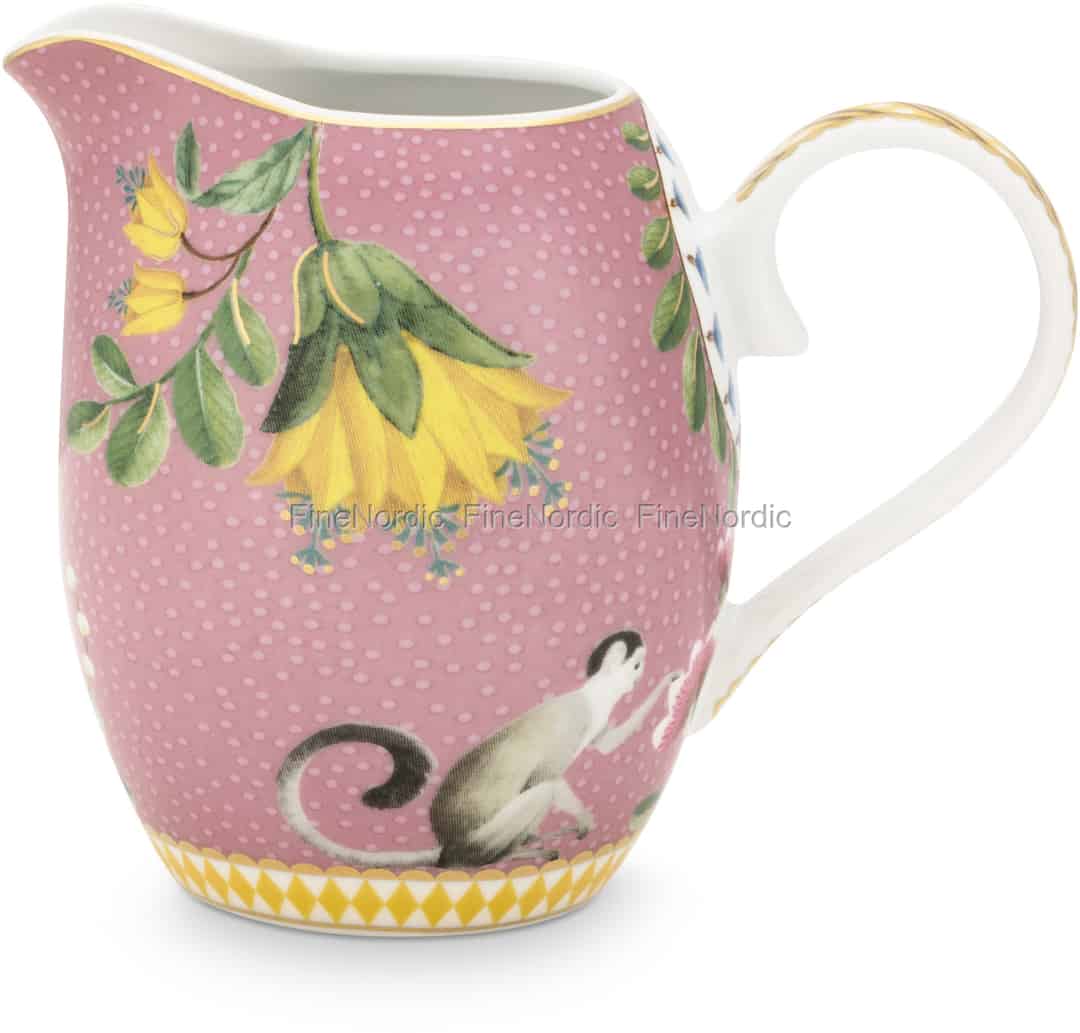 Dieser rosa Pip Studio Krug ist mit exotischen Blumen, einem Affen und wunderschönen goldenen Details dekoriert. Der La Majorelle Krug kann als Milchkännchen verwendet werden, sodass Sie Ihren Gästen die Milch oder Kaffeesahne immer stilvoll servieren können. Der große Griff und Auslauf erleichtern das Anheben und Gießen. Das Porzellankännchen hat ein Fassungsvermögen von 250 ml und kann gut mit den anderen La Majorelle Pink Geschirrteilen kombiniert werden. In unserem Webshop finden Sie eine schöne Auswahl an La Majorelle Produkten, die Sie nach Herzenslust miteinander mischen können.