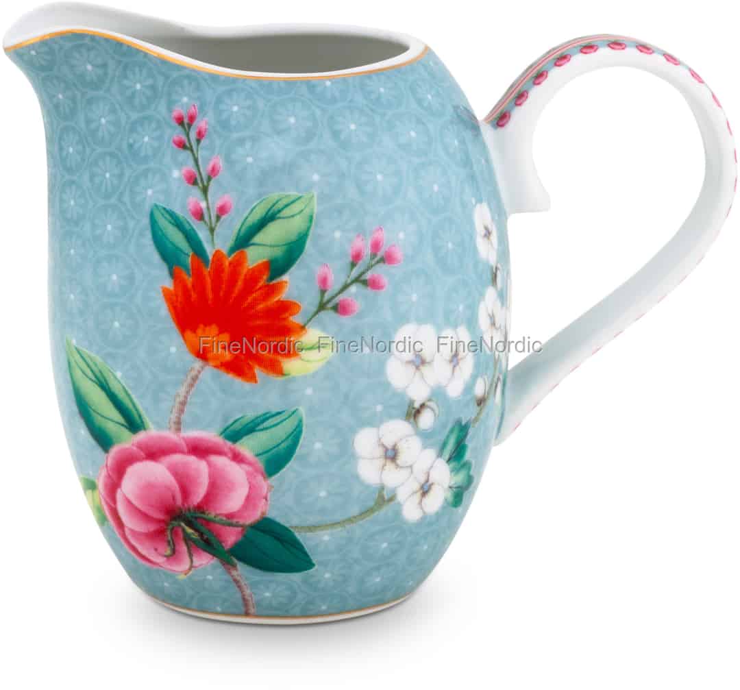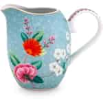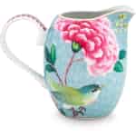Dieser blaue Pip Studio Krug ist ein weiteres schönes Geschirrprodukt aus der beliebten Blushing Bird Kollektion von Pip Studio. Der Krug ist mit exotischen Blumen, goldenen Details und einem Vogel dekoriert. Der Hintergrund hat einen eleganten Print und Sie können an ihr auch eine kleine Überraschung entdecken, welche das Innere des Auslaufs schmückt. Sie kann mit den anderen Kaffee- und Tee Sets der Blushing Birds Kollektion kombiniert werden. Wenn Sie dieses Blushing Bird Muster mögen, dann werfen Sie doch bitte auch einen Blick auf alle anderen Blushing Bird-Produkte, die wir anbieten. Aufgrund der goldenen Details ist die Kanne weder mikrowellen- noch spülmaschinenfest. Wir empfehlen, sie von Hand zu waschen.