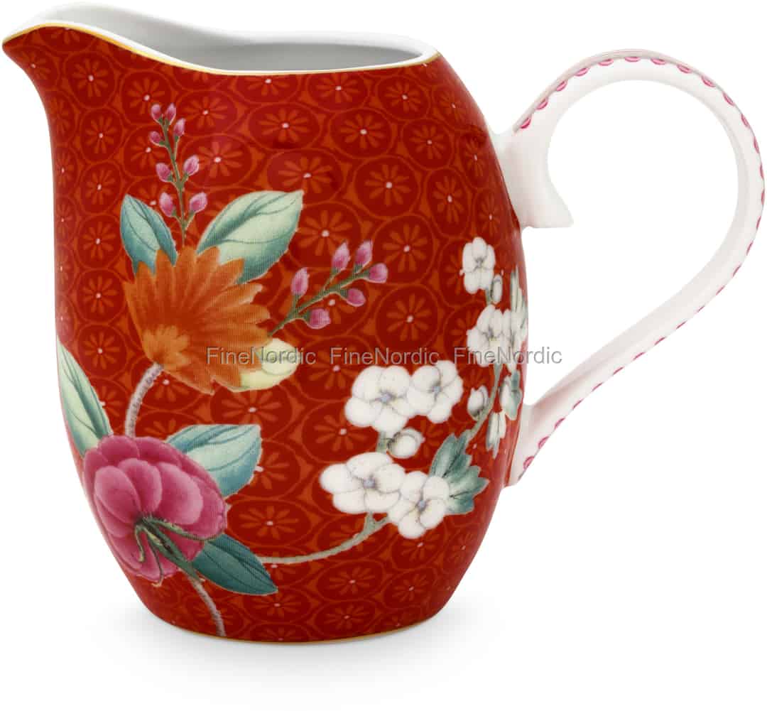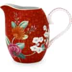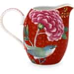 Pip Studio ist bekannt dafür, dass an unerwarteten Stellen seiner Geschirrprodukte kleine Design Überraschungen versteckt sind. Genau wie bei diesem kleinen Krug aus der Blushing Birds Red Serie von Pip Studio. Als allererstes werden Sie die farbenfrohe Außenseite bemerken, die mit exotischen Blumen, einem Vogel und goldenen Details verziert ist. Das Innere scheint schlicht weiß zu sein, bis Sie die hübsche kleine Blume entdecken, die sich am Auslauf versteckt. Das rote Kännchen hat ein Fassungsvermögen von 250 ml und besteht aus feinem Porzellan. Dank des großen Griffs und Ausgusses dieses Milchkännchens ist es wirklich ganz einfach, damit etwas Milch in Ihren Kaffee zu gießen. Der Porzellankrug ist Teil der Blushing Birds Red Serie von Pip Studio und kann gut mit den anderen Produkten dieser beliebten Serie zusammengestellt werden. Wir haben eine schöne Auswahl an Blushing Birds Red Geschirrteilen zur Verfügung, welche Sie nach Belieben kombinieren können.