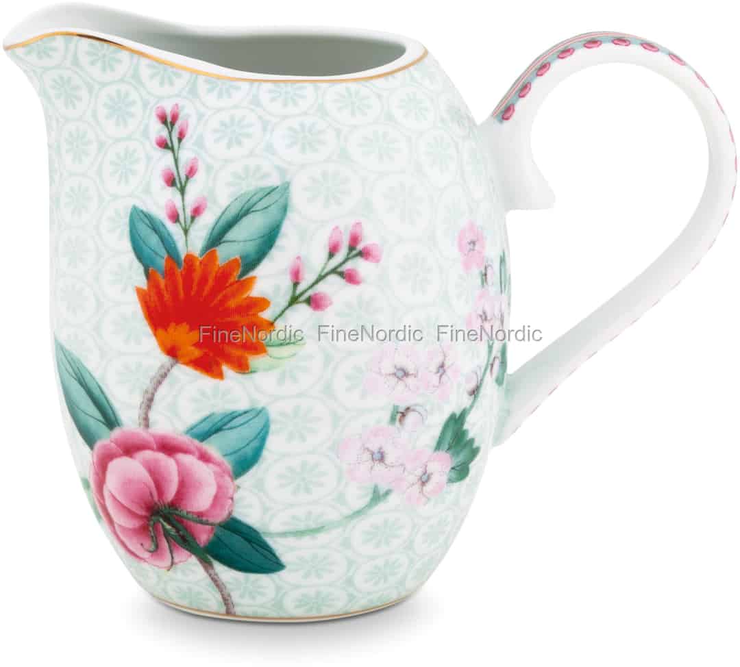 Trinken Sie Ihren Kaffee oder Tee mit Milch? Dann könnte diese kleine Pip Studio Kanne für Sie interessant sein. Das 250 ml Milchkännchen sieht nicht nur fantastisch aus, sie ist durch ihren großen Griff auch leicht zu halten. Dieser kleine Blushing Birds White Krug ist mit exotischen Blumen, goldenen Details und einem Vogel dekoriert. Sein Hintergrund ist ein zarter Print und im Inneres des Auslaufs finden Sie eine kleine Überraschung. Sie kann gut mit den anderen Kaffee- und Tee Sets der Blushing Birds Kollektion kombiniert werden.