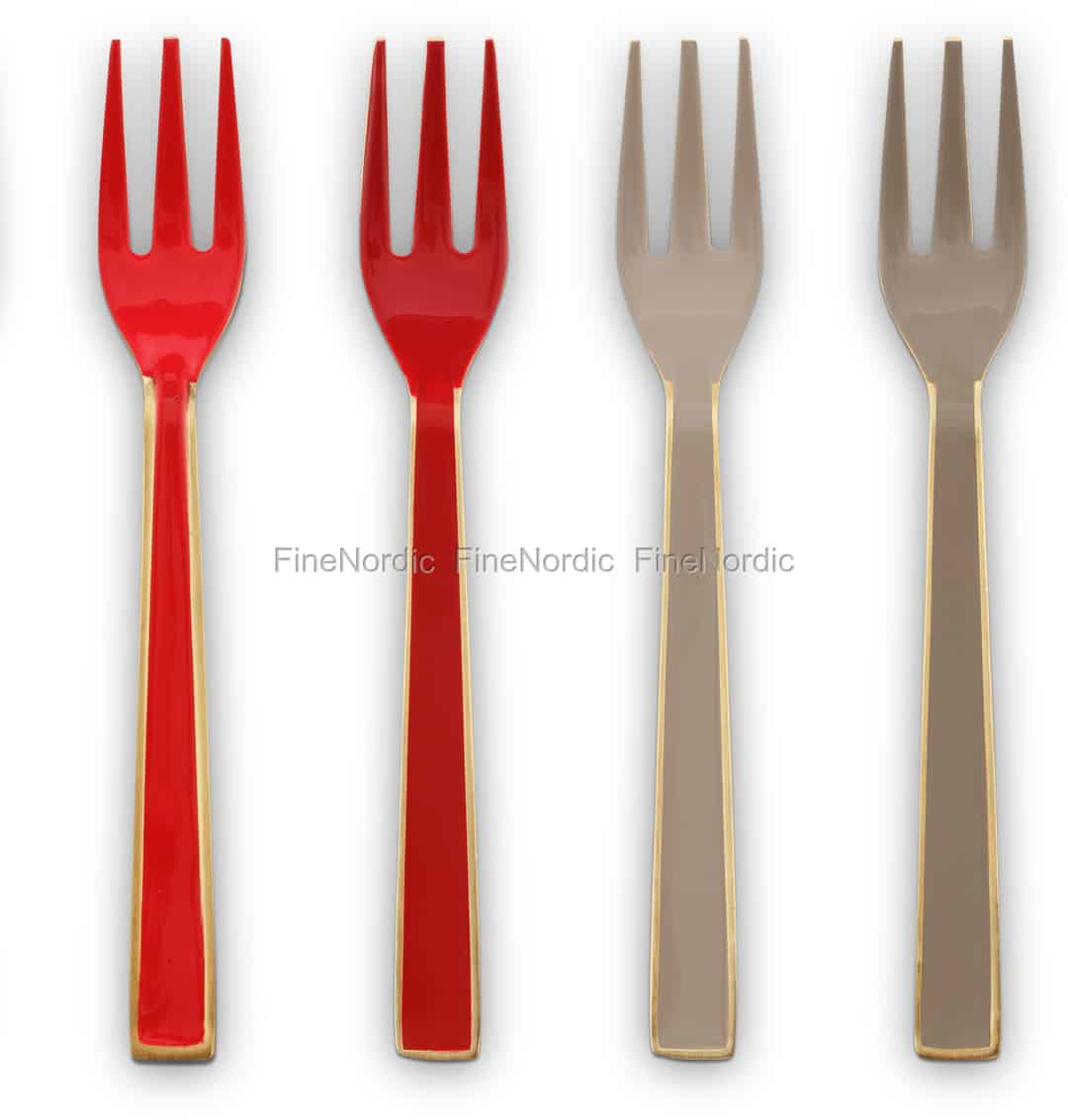 Kuchengabeln Emailliert Khaki/Red 4er Set, von Pip Studio.