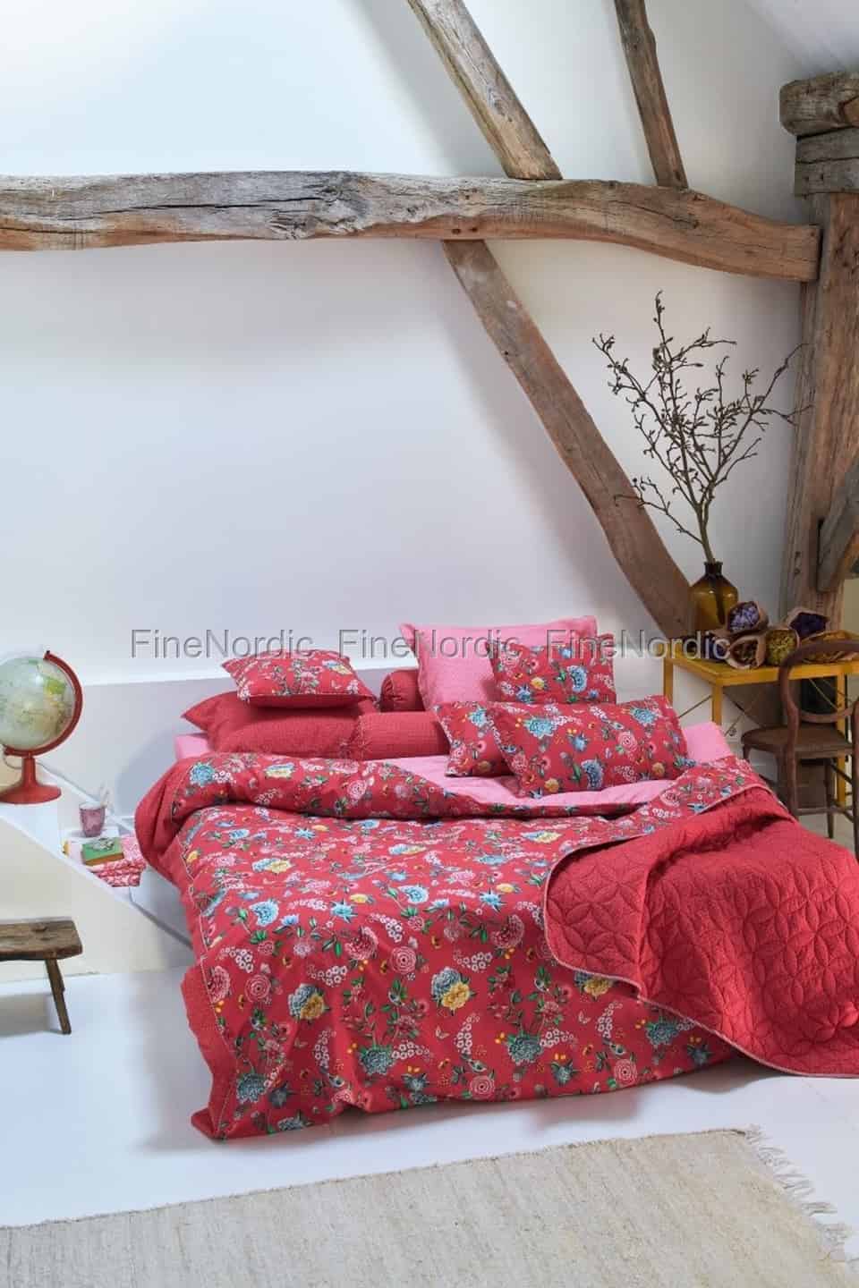 Wer mag es schon nicht, sich in einer kalten Winternacht in eine bequeme Decke kuscheln zu können? Mit diesem Good Night Red Quilt von Pip Studio fühlen Sie sich pudelwarm und wohl. Der rote Pip Studio Quilt, mit dem Good Night Muster, ist ein absoluter Hingucker im Raum! Er zeichnet sich durch sein farbenfrohes Design aus, das aus einer Vielzahl von Blumen besteht. Diese Steppdecke besteht aus 100% Perkal Baumwolle und kann bei 30 ° C in der Waschmaschine gewaschen werden. Dank der aufwändigen Nähte hat sie viel Volumen und passt wunderbar zu den anderen Textilprodukten der Good Night Red Collection.