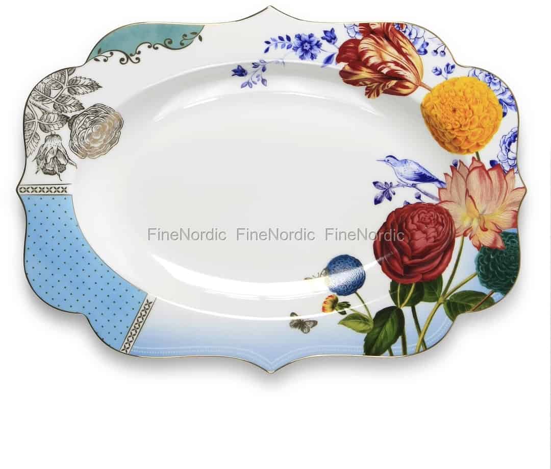 Sobald Sie diese Servierplatte auf den Tisch stellen, wird sie die Aufmerksamkeit Ihrer Gäste auf sich ziehen. Denn, ihr gewellter Rand, die mehrfarbigen Muster und die detaillierten Illustrationen ergeben zusammen diese wunderschöne Servierplatte. Die Royal Servierplatte von Pip Studio überzeugt mit fantastischen Farbkombinationen und einem ausgefallenen Design. Haben Sie den kleinen Schmetterling schon entdeckt? Mit dieser Platte können Sie das Abendessen, Desserts und vieles mehr servieren. Ihre beachtliche Größe ermöglicht eine vielfältige Nutzung und dank ihrer hervorragenden Qualität können Sie für viele Jahre Freude an ihr haben.