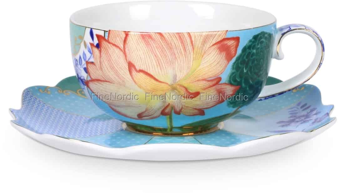 Dieses farbenfrohe Pip Studio Teetassen- und Untertassen-Set sorgt für gute Stimmung am Frühstückstisch. Das schöne Blumendesign auf der Tasse passt gut zur Untertasse, die mit mehreren Mustern geschmückt ist. Die Untertasse sieht ganz besonders aus mit ihrem gewellten Rand Design. Dieses Set ist Teil der Pip Studio Royal Kollektion und besteht aus 100% Porzellan. Das Royal Design beinhaltet historische Embleme, Vintage Blumen, handbemalte Blüten und raffinierte goldenen Details. Genießen Sie eine schöne Tasse Tee aus diesem fantastischen Teetassen- und Untertassen-Set von Pip Studio.