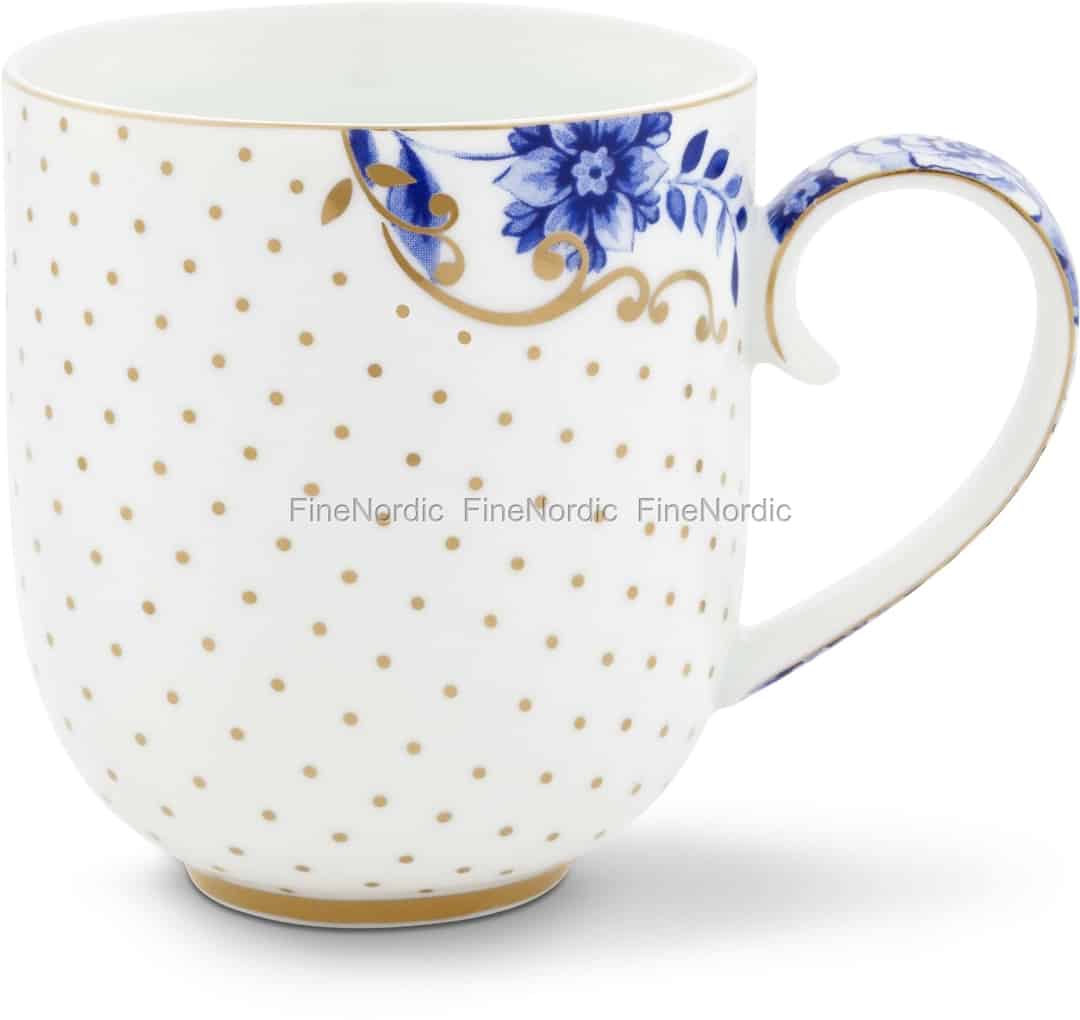 Legen Sie an einem hektischen Tag auch gerne mal eine kleine Pause ein, um eine Tasse Tee zu trinken? Die große Pip Studio Royal White Dots Tasse wird Ihnen gerne dabei helfen. Füllen Sie sie einfach mit Ihrem heißen Lieblingsgetränk, nehmen Sie einen Schluck, lehnen Sie sich zurück, schließen Sie die Augen und genießen Sie ein paar Minuten friedlicher Ruhe. Dank ihres großen Griffs ist die Tasse leicht zu halten und das Trinken aus dieser 100% Porzellan Tasse fühlt sich an wie Luxus pur. Nur zu früh ist dieser magische Moment wieder vorbei, das Getränk ist alle und Sie sind wieder in Alltag angekommen... bis zur nächsten Tasse Tee! Die große Pip Studio Royal White Dots Tasse sollte von Hand gewaschen werden. Sie ist weder für die Spülmaschine noch für die Mikrowelle geeignet.