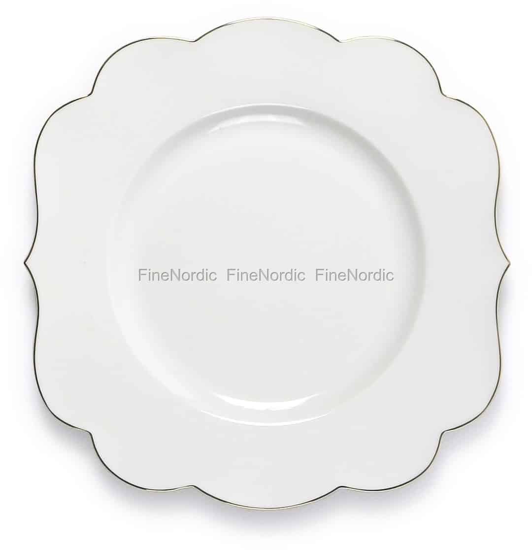 Pip Studio ist bekannt für seine ausgefallenen Designs und seine farbenfrohen Muster. Daher wird dieser weiße Frühstücksteller nicht gleich automatisch als Pip Studio Teller erkannt. Er ist Teil der Royal White Kollektion und hat eine dünne, goldfarbene Linie entlang des Wellenrandes. Sie können ihn zum Frühstück, für einen Beilagensalat oder als Vorspeisenteller verwenden. Er hat einen Durchmesser von 23,5 cm und besteht aus 100% Porzellan. Dieser weiße Frühstücksteller lässt sich gut mit dem Royal White Porzellan sowie vielen der anderen farbenfrohen Pip Studio Geschirrteilen kombinieren, welche Sie alle hier in unserem Webshop entdecken können.