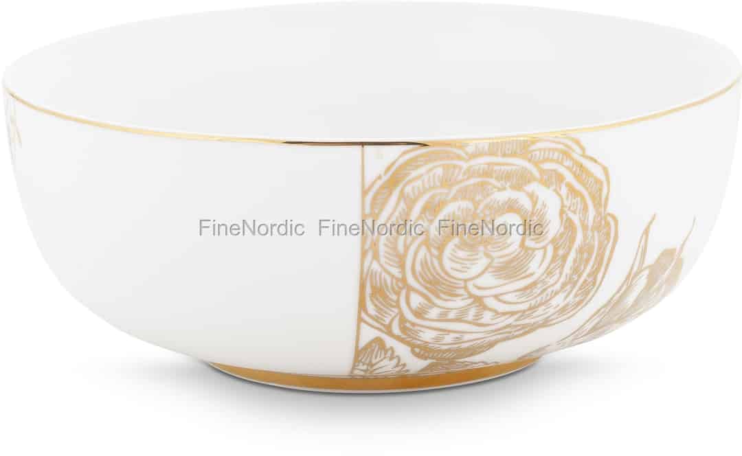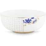 Schalen können außer für das Essen auch für verschiedene andere Dinge verwendet werden. Stellen Sie eine neben Ihren Eingang, um Kleingeld, Schlüssel und andere Kleinigkeiten darin zu bunkern. Verwenden Sie sie für die Accessoires Ihrer Kinder, pflanzen Sie ein Küchenkraut hinein, oder verwenden Sie sie, um kleine Schminkutensilien in Ihrem Badezimmer aufzubewahren. Dies sind nur einige Ideen, für die diese Pip Studio Royal Schüssel verwendet werden kann. Diese Schale ist Teil der Royal White Porzellan Kollektion. Diese Royal White Produkte bestehen aus 100% Porzellan mit blau lackierten Details und goldenen Elementen. Die Schüssel ist mit einem goldfarbenen Punktmuster, einer goldfarbenen Rose und einem goldfarbenen Rand entlang der oberen und unteren Kante verziert. Man kann auch ein kleines blaues Blumendetail auf ihrem weißen Hintergrund entdecken. Fügen Sie sie Ihrer Royal White Sammlung hinzu oder nutzen Sie sie als Geschenk für einen Royal White Sammler.