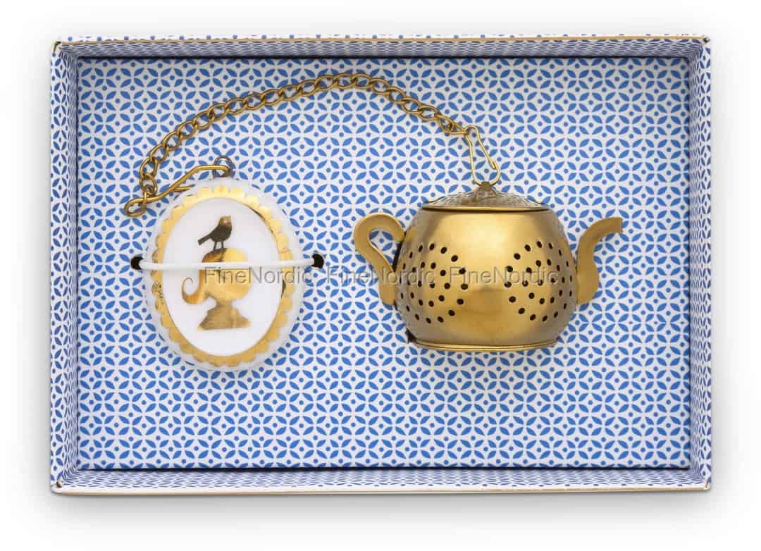 Was ist eine einfache Art und Weise, um in nur wenigen Minuten etwas Stress abzubauen? Setzen Sie sich hin und genießen Sie eine schöne Tasse Tee! Dieser Pip Studio Teeinfuser hilft Ihnen dabei. Das Teesieb ist Teil der Pip Studio Royal White Kollektion und hat die Form einer Teekanne und am anderen Ende seiner Kette ist ein Porzellanmedaillon angebracht. Sie können das Pip Studio Logo auf dem Medaillon sehen. Wenn Sie Ihren Tee zubereiten möchten, müssen Sie nur den kleinen Teekannen Teesieb mit aromatischem Tee füllen, ihn in eine Tasse heißes Wasser tauchen und schon bald ist ein leckeres Getränk daher gezaubert. Wenn der Tee mit Ziehen fertig ist, dann können Sie ihn gleich genießen. Lassen Sie Ihre Seele baumeln, während Sie ein paar Minuten der Entspannung genießen. Was denken Sie? Hat es geholfen?