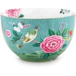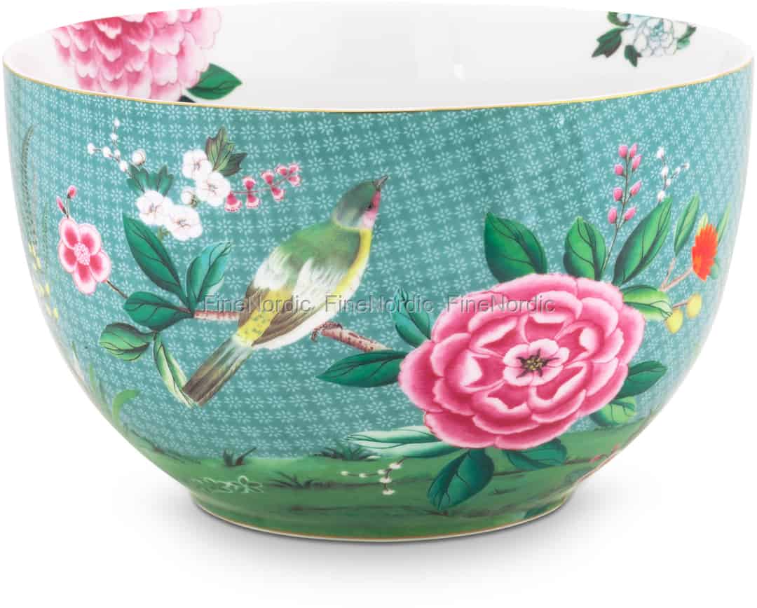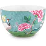 Diese Pip Studio Schüssel Blushing Birds Blue hat einen Durchmesser von 23 cm und besteht aus 100% Porzellan. Die Außenseite der Schale ist mit exotischen Blumen und Vögeln, goldenen Details und einem Schmetterling verziert. Der Hintergrund hat ein elegantes Muster und einige Elemente des Designs zieren auch das Innere der Schüssel. Befüllen Sie sie mit Popcorn für einen Filmabend oder servieren Sie Ihren Gästen damit einen Salat. Sie können sie wunderbar mit den anderen Porzellansets der Blushing Birds Kollektion kombinieren.