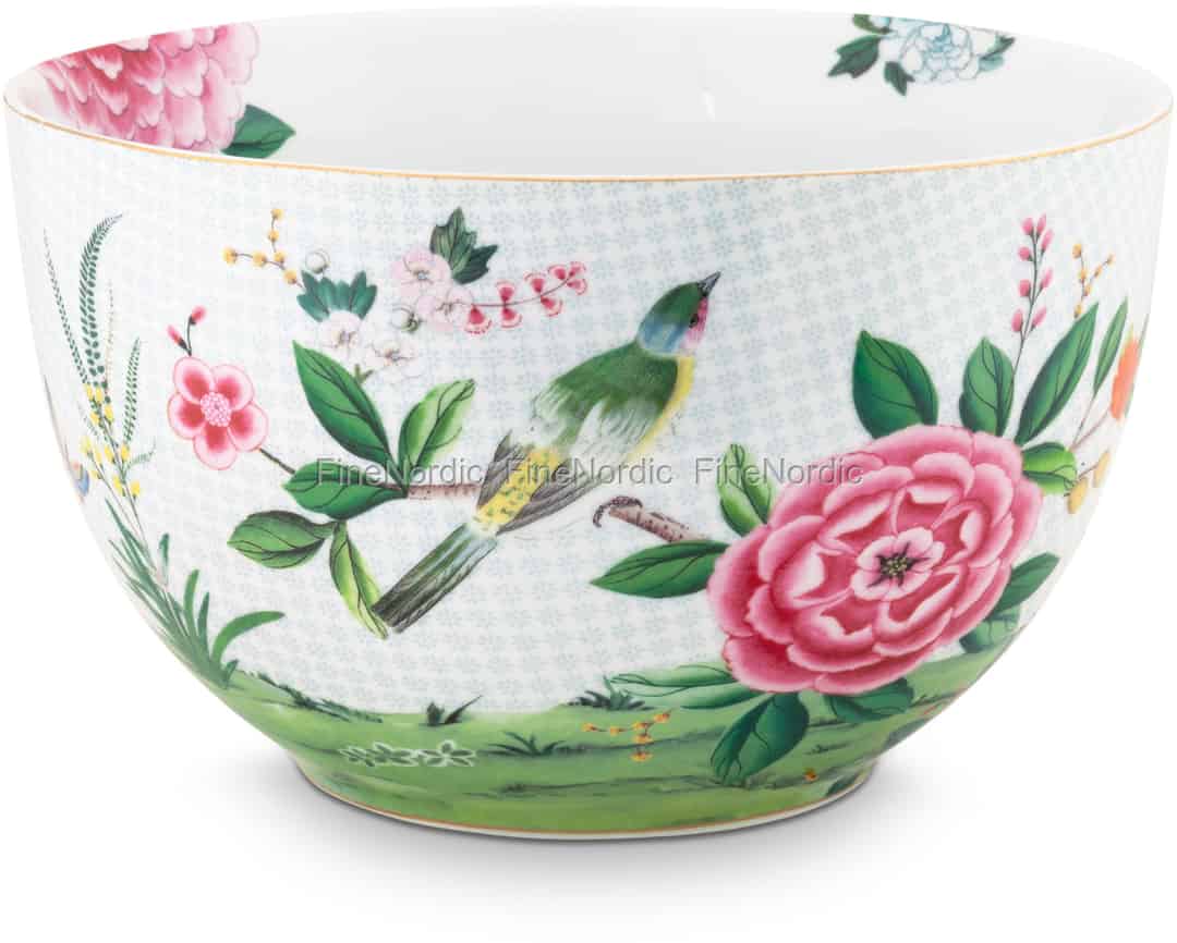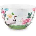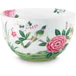 Servieren Sie den Salat, das Dessert oder das Popcorn mit dieser großen Schüssel von Pip Studio. Die Blushing Birds White Schale ist mit Vögeln, exotischen Blumen, einem Schmetterling und einigen goldenen Details dekoriert. Der Hintergrund hat einen eleganten Print und Elemente aus dem Design schmücken auch das Innere der Schüssel. Sie können sie wunderbar mit den anderen Porzellansets der Blushing Birds Kollektion kombinieren. Kaufen Sie eine für sich selbst und eine für einen Freund, der auch ein Fan von Pip Studio ist.