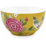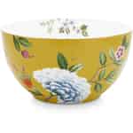 Pip Studio ist bekannt für seine fantasievollen Designs und seine schönen Farbkombinationen. Genau wie auch diese Blushing Birds Yellow Schüssel zum Beispiel. Der gelbe Hintergrund der Schale ist mit exotischen Blumen, einem Vogel und hübschen goldenen Details bedeckt. Ein kleiner Teil des Designs geht sogar über den Rand bis in das weiße Innere der Schüssel. Wenn Sie direkt in die Schüssel hinein schauen, dann sehen Sie in der Mitte auch eine kleine, blaue Blume. Genießen Sie eine Suppe, Frühstückscerealien oder einen Salat aus dieser Porzellanschale. Sie lässt sich gut mit den anderen Geschirrprodukten aus der Blushing Birds Kollektion kombinieren und sie sorgen immer für einen schön gedeckten Tisch.