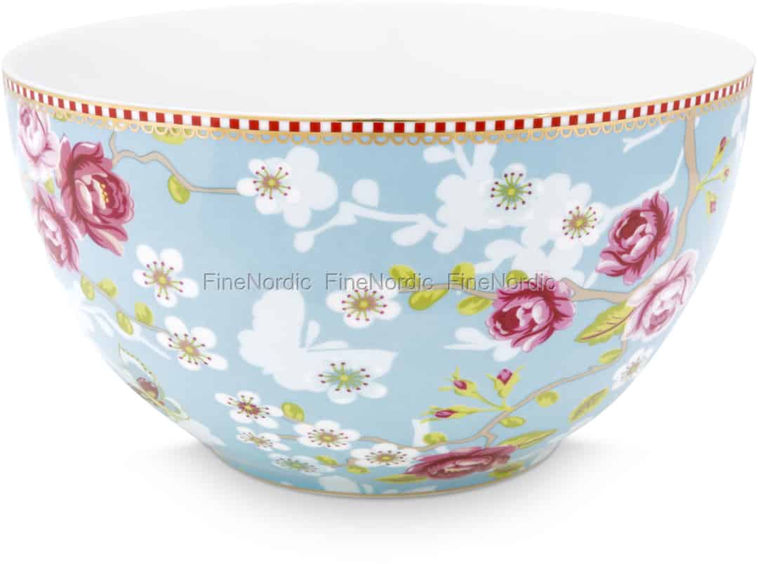 Genießen Sie eine leckere Suppe oder Chili mit dieser Chinese Rose Blue Schüssel von Pip Studio. Die reichlich große Schüssel besteht aus 100% Porzellan und ist mit einem wunderschönen Rosenmuster bedeckt. Am oberen Rand sehen Sie eine weiße und rote Linie mit goldenen Details, die viele Pip Studio-Fans sofort erkennen werden. Die hellblaue Schale ist mit Rosen in verschiedenen Rottönen geschmückt. Wenn Sie etwas genauer hinschauen, dann entdecken Sie bestimmt auch den Schmetterling. Die Chinese Rose Schüssel ist auch in einer rosa und einer khakifarbenen Version erhältlich.