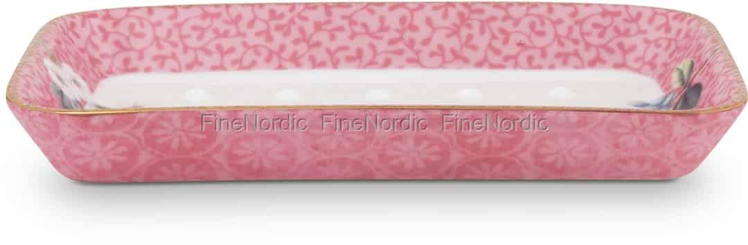 Ein weiteres großartiges Badaccessoire von Pip Studios Good Morning Pink Serie, ist diese hübsche Seifenschale. Diese Porzellan Seifenschale ist Teil der Pip Studio Floral Kollektion. Sie hat einen gemusterten Hintergrund aus rosa Blumen auf der Außenseite. Auf der Innenseite befindet sich ein anderes rosafarbenes Muster und der Boden der Innenseite ist schlicht Weiß gehalten und mit einem Blumendekor an jedem Ende verziert. Die goldenen Details am Rand der Seifenschale machen sie zu einem echten Pip Produkt. Sie ist 14 cm lang und 9,5 cm breit und bietet einen guten Ablegplatz für Ihre Seife. Schauen Sie sich gerne auch mal all die anderen wunderschönen Good Morning Pink Badaccessoires an, die wir hier in unserem Webshop anbieten.