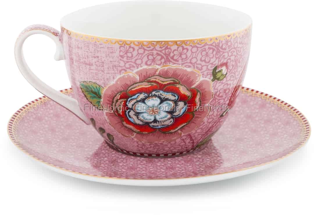 Cappuccino-Liebhaber aufgepasst! Mit dieser schönen Spring to Life Cappuccino-Tasse und Untertasse Pink können Sie Ihren Cappuccino noch mehr genießen. Die Tasse und die Untertasse verfügen über einen atemberaubenden, rosa gemusterten Hintergrund sowie auch die markante rot-weiß gestreifte Pip Linie mit goldenen Details. Eine schöne Blume ziert die Tasse und Sie können sie mit bis zu 280 ml Ihres bevorzugten heißen Lieblingsgetränks füllen. Sie ist leicht an ihrem großen Griff zu halten und die Untertasse bietet ausreichend Platz, um Ihren Löffel dort abzulegen, oder vielleicht aber einen Keks oder ein Stück Schokolade? Die Pip Studio Spring to Life Cappuccino-Tasse und Untertasse können mit den anderen Spring to Life Porzellanprodukten kombiniert werden. So können Sie den Tisch genauso farbenfroh oder stilvoll eindecken, wie Sie es möchten. Die Cappuccino-Tasse und Untertasse von Pip Studio Spring to Life muss von Hand gewaschen werden. Sie sind weder spülmaschinen- noch mikrowellengeeignet.