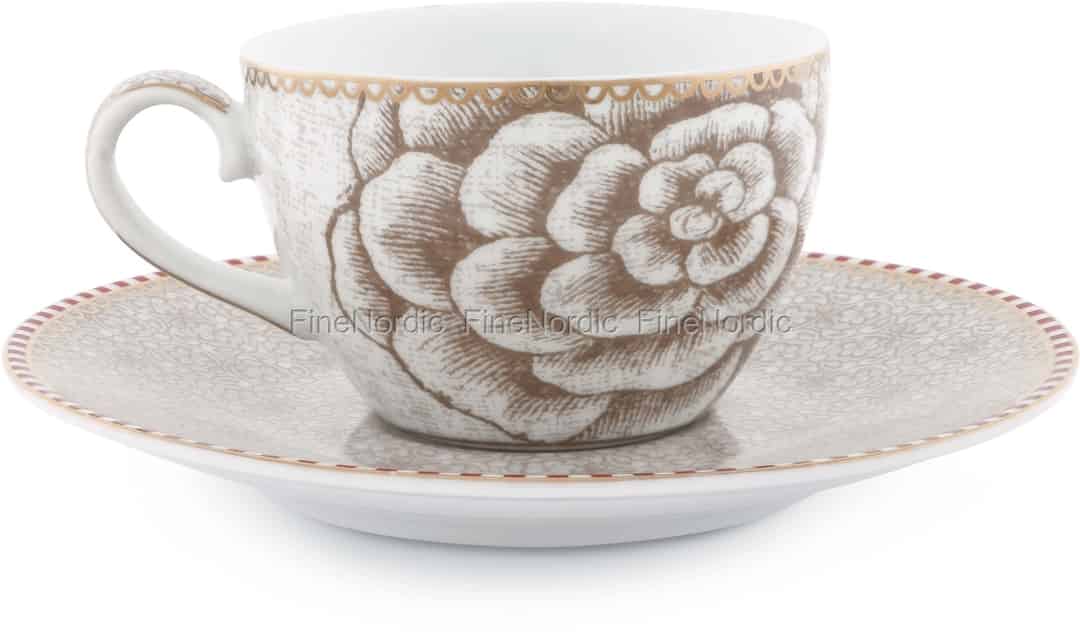 Wer kann dem Geruch von frisch gebrühtem Espresso schon widerstehen? Nicht viele und vor allem nicht, wenn er in dieser wunderschönen Espressotasse und Untertasse serviert wird. Diese Pip Studio Espressotasse und Untertasse ist aus hochwertigem Porzellan gefertigt. Die Tasse ist mit einer schönen Rose und subtilen Golddetails geschmückt. Die Untertasse ist außerdem mit goldenen Akzenten, einem antiken Blumenmuster und der berühmten rot-weißen Pip Linie mit goldfarbenen Details verziert. Die Spring to Life Tasse hat ein Fassungsvermögen von 75 ml und ist durch ihren großen Henkel leicht zu halten. Sie lässt sich gut mit einem Teller aus der Spring to Life Kollektion kombinieren, falls Sie etwas Süßes zu Ihrem Espresso genießen möchten.