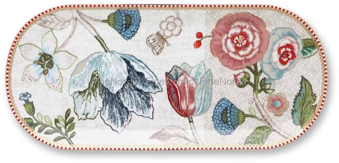 Eine wirklich schöne Art und Weise, Ihren Gästen Kuchen zu servieren, ist mit diesem Pip Studio Spring to Life Off-White Kuchenteller. Das farbenfrohe Blumenmuster des Tellers wird von Pips berühmtem rot-weißem und mit goldenen Akzenten verstärktem Streifendetail umrandet. Der Teller ist 34 cm lang und 15 cm breit und wird ein schöner Blickfang auf der Anrichte sein. Platzieren Sie ihn alleine oder kombinieren Sie ihn mit anderen Spring to Life Porzellanteilen, um eine schönen und interessant gedeckten Tisch zu gestalten. Nach Gebrauch waschen Sie den Teller bitte von Hand, denn wegen des Dekors darf er weder in die Spülmaschine noch in die Mikrowelle.