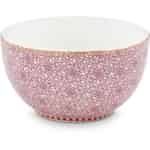 Diese Pip Studio Spring to Life Schüssel Pink ist mit einem romantischen Blumendesign auf rosa Hintergrund bedeckt. Die Innenseite der Schüssel ist weiß und auf dem Boden der Innenseite ist ein hübscher rosa Schmetterling zu sehen. Die Schüssel hat einen Durchmesser von 9,5 cm und kann zum Servieren von Dips, Pralinen oder anderen kleinen Leckereien verwendet werden. Entlang der oberen Kante der Schüssel ist ein goldener Dekor zu sehen und entlang der unteren Kante der Schüssel können Sie die unverkennbare rot-weiß gestreifte Pip Linie mit goldenem Detail erkennen. Diese 100% Porzellanschüssel muss aufgrund ihres Dekors von Hand gewaschen werden. Es ist weder für die Spülmaschine noch für die Mikrowelle geeignet.