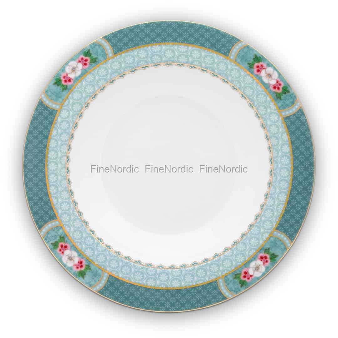 Laden Sie gerne Freunde zum Abendessen ein und decken dann den Tisch extra hübsch ein? Mit diesem Blushing Birds Blue Suppenteller wird dies zu einem Kinderspiel. Dieser Teller besteht zu 100% aus Porzellan und ist mit einem exotischen Blumenmuster verziert. Entlang der Kante sind verschiedene Designs zu sehen und Sie können auch viele feine goldene Details auf diesem Teller entdecken. Decken Sie den Tisch mit diesem attraktiven Suppenteller und zusammen mit anderen Geschirrteilen aus der Blushing Bird Kollektion von Pip Studio. Wir sind sicher, Ihre Gäste werden begeistert sein.
