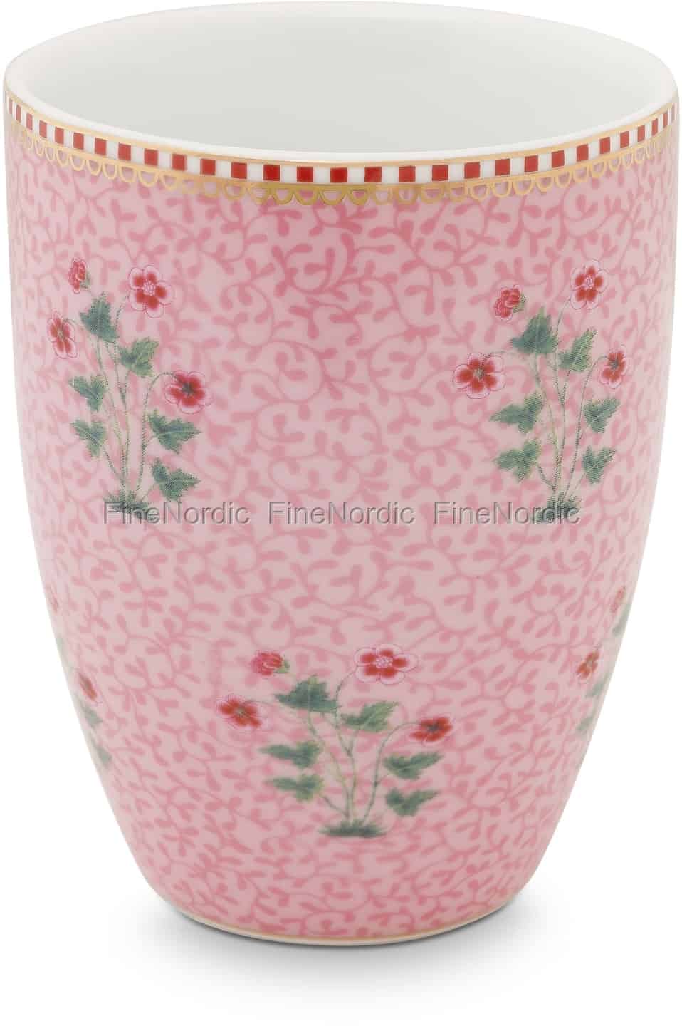 Die Pip Studio Tasse Floral Good Morning Pink kann auf verschiedene Art und Weise verwendet werden. Nutzen Sie sie als normales Trinktasse, stellen Sie sie als Zahnbürstenhalter auf das Waschbecken oder fügen Sie hübsche handgepflückte Blumen aus dem Garten bei und verwenden Sie sie als kleine Vase. Der rosa gemusterte Hintergrund ist mit einigen detaillierten kleinen Blumen geschmückt. Am Rand der Tasse sehen Sie die markante rot-weiß gestreifte Pip-Linie mit goldenen Details. Die Pip Studio Good Morning Pink Tasse ist nicht nur hübsch anzusehen, sondern auch ein wahres Multitalent. Diese Pip Studio Tasse muss von Hand gewaschen werden. Sie ist weder spülmaschinen- noch mikrowellengeeignet.
