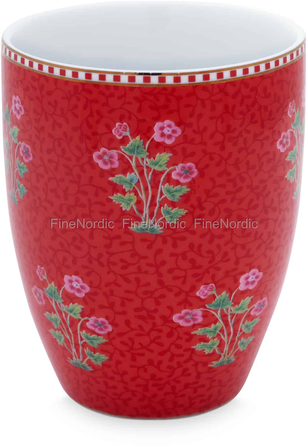 Mögen Sie die Farbe Rot? Dann werden Sie diese Pip Studio Tasse Good Morning Red lieben. Der attraktive rote Hintergrund des Trinkbechers in Kombination mit dem hübschen Blumendesign und den markanten Pip Streifen am Rand den henkellosen Bechers, lassen ihn einfach hervorragend aussehen. Er hat ein Fassungsvermögen von 300 ml und Sie können Ihr heißes oder kaltes Lieblingsgetränk daraus genießen. Wenn Sie diesen Print mögen, dann werfen Sie einen Blick auf alle anderen Produkte, die wir mit dem gleichen Design verfügbar haben. Sie finden ihn nicht nur auf Porzellanartikeln, sondern auch auf Kosmetikkoffern und -beuteln.