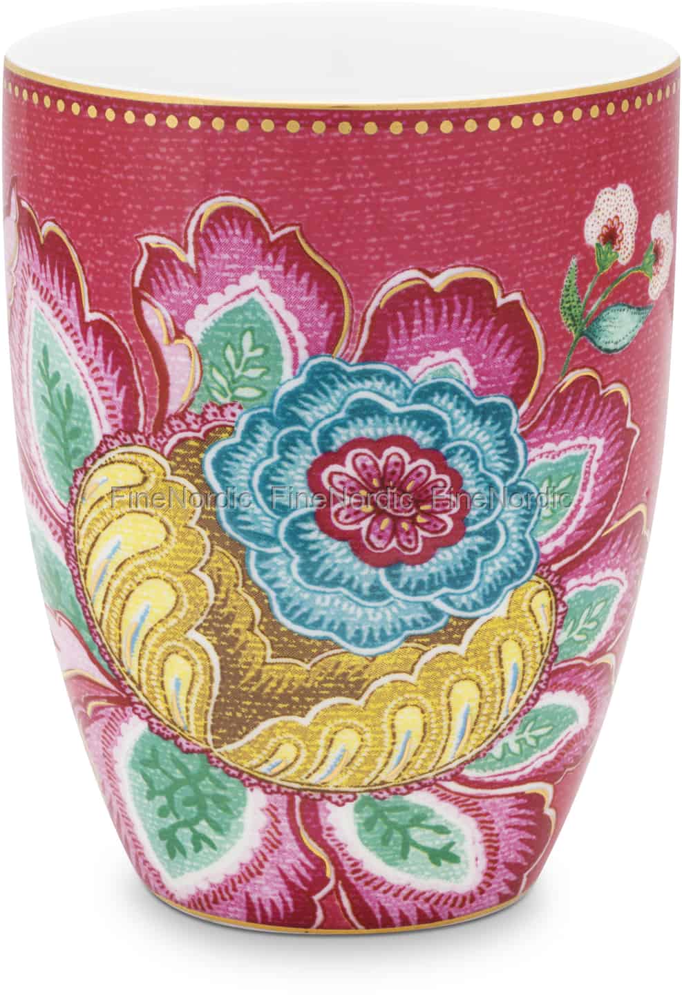 Die Pip Studio Tasse Jambo Flower Pink ist mit einem wunderschönen Blumenmuster und hübschen goldenen Akzenten dekoriert. Die pinkfarbene Tasse hat ein Fassungsvermögen von 300 ml und besteht aus feinem Porzellan. Sie können diesen henkellosen Trinkbecher auch als Zahnputzbecher im Badezimmer verwenden. Er ergänzt die Jambo Flower Pink Seifenschale perfekt. Der Jambo Flower Trinkbecher ist auch in einer grünen Version erhältlich.