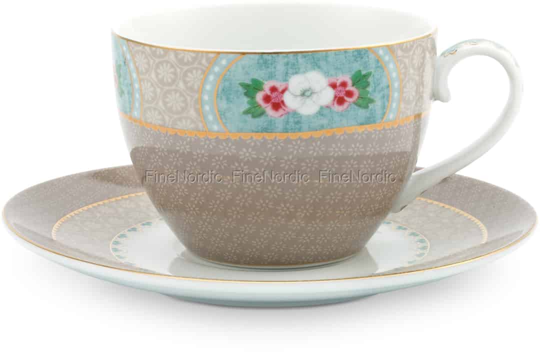 Pip Studio Tasse mit Untertasse Blushing Birds Khaki