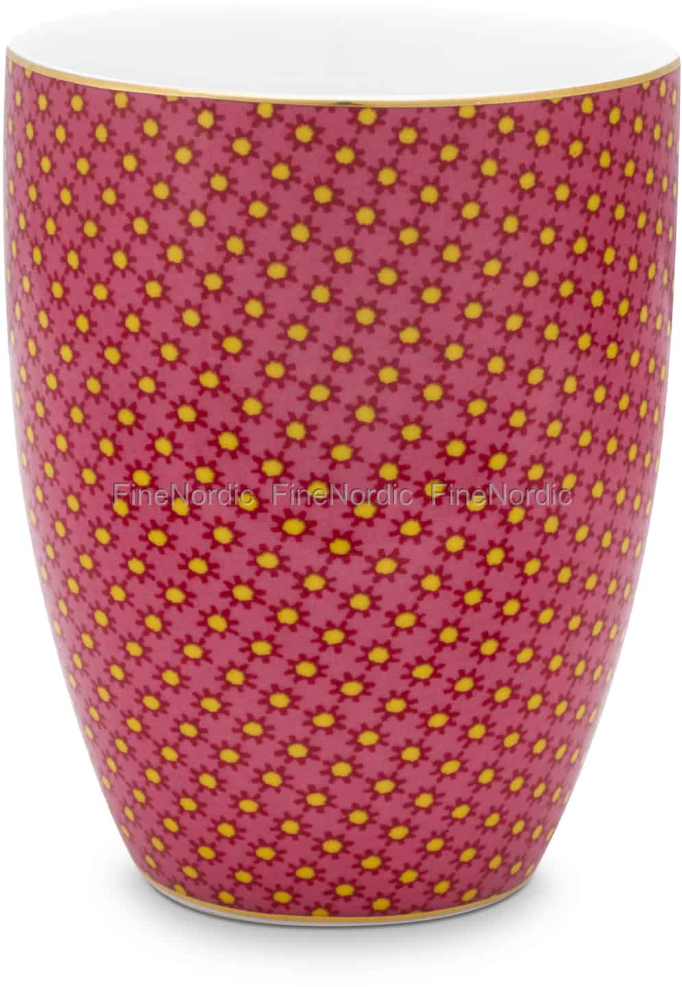 Der Twinkle Star Pink Trinkbecher von Pip Studio sieht einfach fantastisch aus mit seiner pinken Farbe, dem geometrischen Muster und den goldenen Details. Die weiße Innenseite des henkellosen Bechers bietet einen schönen Kontrast zur gemusterten Außenseite. Er besteht aus hochwertigem Porzellan und hat ein Fassungsvermögen von 300 ml. Genießen Sie Milch, Wasser, Kaffee und mehr aus dieser ansprechenden Tasse. Der Twinkle Star Trinkbecher ist auch in einer grünen Version erhältlich.