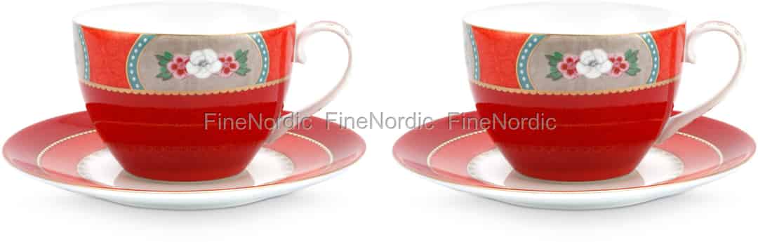 Pip Studio Tassen & Untertassen Blushing Birds Red 2er Set