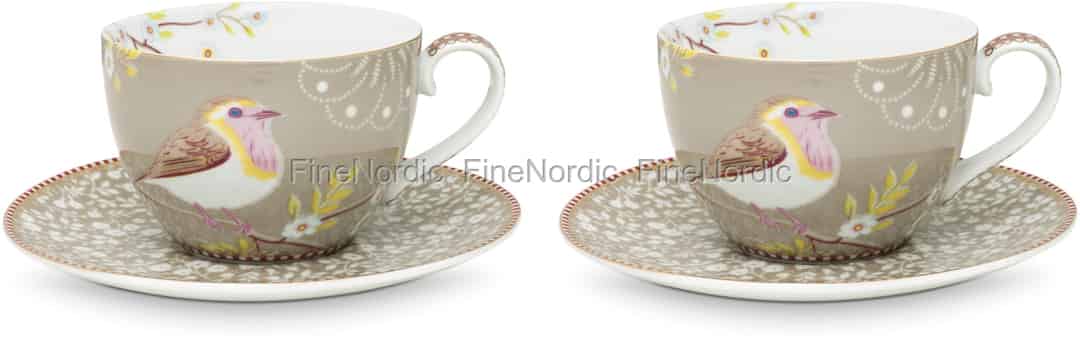 Pip Studio Tassen & Untertassen Early Bird Khaki 2er Set in Geschenkbox