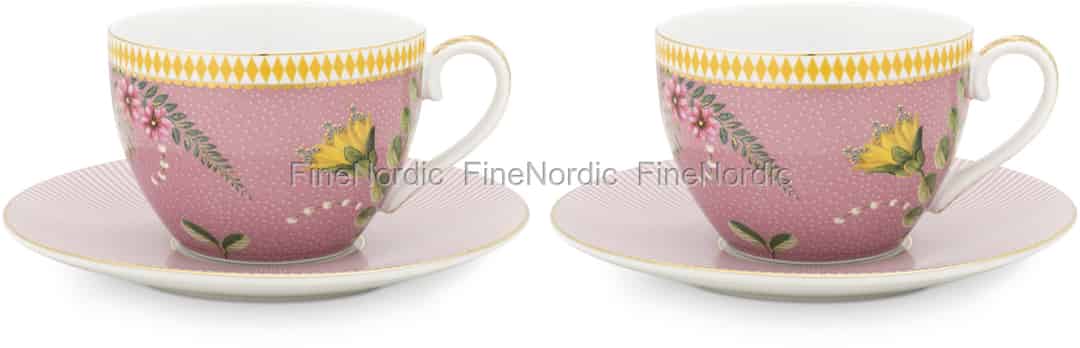 Das Pip Studio La Majorelle 2er-Set wird in einer wunderschönen Geschenkbox geliefert. Die rosa Tassen und Untertassen bestehen aus hochwertigem Porzellan und die Tassen sind mit fantasievollen exotischen Blumen und goldenen Details verziert, während die Untertassen mit einem gestreiften Design geschmückt sind. Genießen Sie mit der besten Freundin eine schöne Tasse Tee oder Kaffee aus diesen beiden Tassen. Kombinieren Sie sie mit den anderen exquisiten La Majorelle Geschirrprodukten und Sie werden sich sehr über den wunderschön gedeckten Tisch freuen können. Das La Majorelle 2er Set ist auch eine großartige Geschenkidee für einen Pip Studio Fan, da es ja praktischerweise schon in einer sehr ansprechenden Geschenkbox geliefert wird.