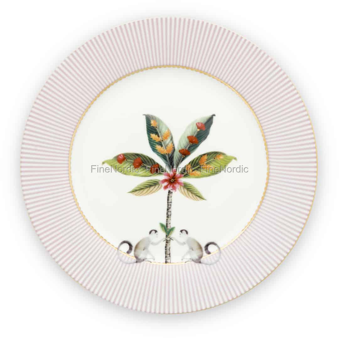 Der La Majorelle Teller von Pip Studio besteht aus delikatem Porzellan und hat ein wunderschönes Design. In der Mitte des Tellers sehen Sie eine Palme und zwei Affen und der Rand ist mit einem hübschen, gestreiften Muster verziert. Wir lieben die goldenen Details dieses Tellers, welche ihn wirklich herausstechen lassen. Verwenden Sie ihn als Frühstücksteller, Imbissteller, Dessertteller oder Vorspeisenteller und kombinieren Sie ihn mit den anderen Geschirrteilen aus der La Majorelle Kollektion von Pip Studio. Das La Majorelle Porzellan von Pip Studio sorgt immer für einen schön gedeckten Tisch, an dem Sie und Ihre Gäste nur zu gerne sitzen werden.