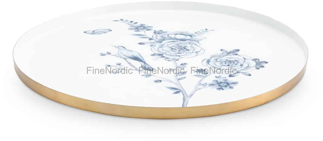 Harmonisierende Farben und fantasievolles Design sind nur zwei der vielen Gründe, warum die Produkte von Pip Studio so begehrt und beliebt sind. Das spiegelt sich auch in diesem Teller wider. Der weiße Teller ist mit einem gemalten Vogel, einem Schmetterling und exotischen Blumen verziert, alle in blauer Farbe. Der Rand des Metalltellers ist goldfarben und bietet einen schönen Rahmen für das weiß-blaue Design. Verwenden Sie ihn als Serviertablett oder als Untersetzer für Dekorationen wie Kerzenhalter und Vasen, um nur ein paar Vorschläge zu nennen. Der schöne Teller kann außerdem auch sehr gut mit den Produkten aus der Royal White Kollektion von Pip Studio kombiniert werden.
