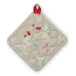 Wer sagt dann, dass ein Topflappen nur praktisch sein soll? Warum kann er dazu nicht auch noch fantastisch aussehen? Dieser quadratische Khaki Topflappen von Pip Studio bietet beides. Er hat auf seiner Rückseite eine praktische Tasche wo Sie Ihre Hand reinstecken können und damit Sie sich beim Backen oder Kochen nicht die Finger verbrennen, und dazu hat er auch noch ein sehr attraktives Design. Dieser Hummingbirds Topflappen hat einen kakifarbenen Hintergrund und ist mit Blumen, Beeren und Kolibris geschmückt. Wenn er mal gerade nicht in Benutzung ist, dann können Sie ihn einfach an seiner praktischen Schlaufe aufhängen. Auf diese Weise kann er gleich auch als schöne Dekoration in der Küche dienen. Wenn er mal schmutzig sein sollte, dann können Sie ihn einfach bei 30 ° C in der Waschmaschine waschen und er ist dann sofort wieder einsatzbereit. Dieser Topflappen ist auch in den Farben Pink und Blau in unserem Webshop erhältlich.