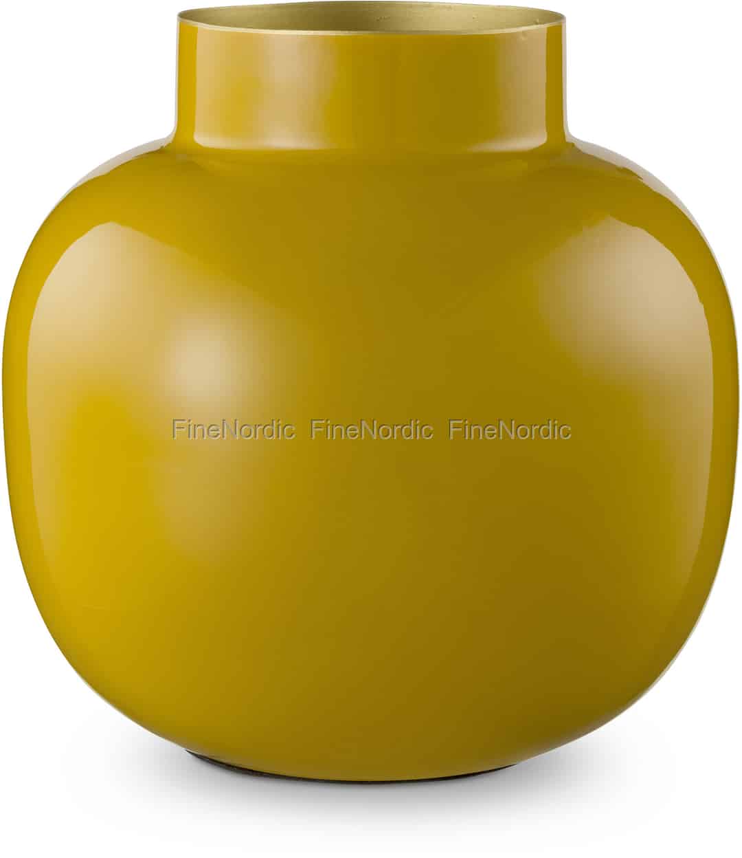 Diese gelbe Pip Studio Vase zeichnet sich durch ihre hübsche gelbe Farbe und ihre üppige runde Form aus. Fügen Sie der Vase ein paar Blumen oder blühende Zweige hinzu und sie wird zu einem schönen Herzstück auf dem Tisch. Auch ohne Blumen oder Zweigen dient sie als hübsche Dekoration im Raum. Sie können sie alleine wo hinstellen oder aber mit anderen Dekoartikeln kombinieren. Die Metallvase ist Teil der Blushing Birds Kollektion von Pip Studio und kann gut mit Produkten aus dieser Kollektion kombiniert werden.