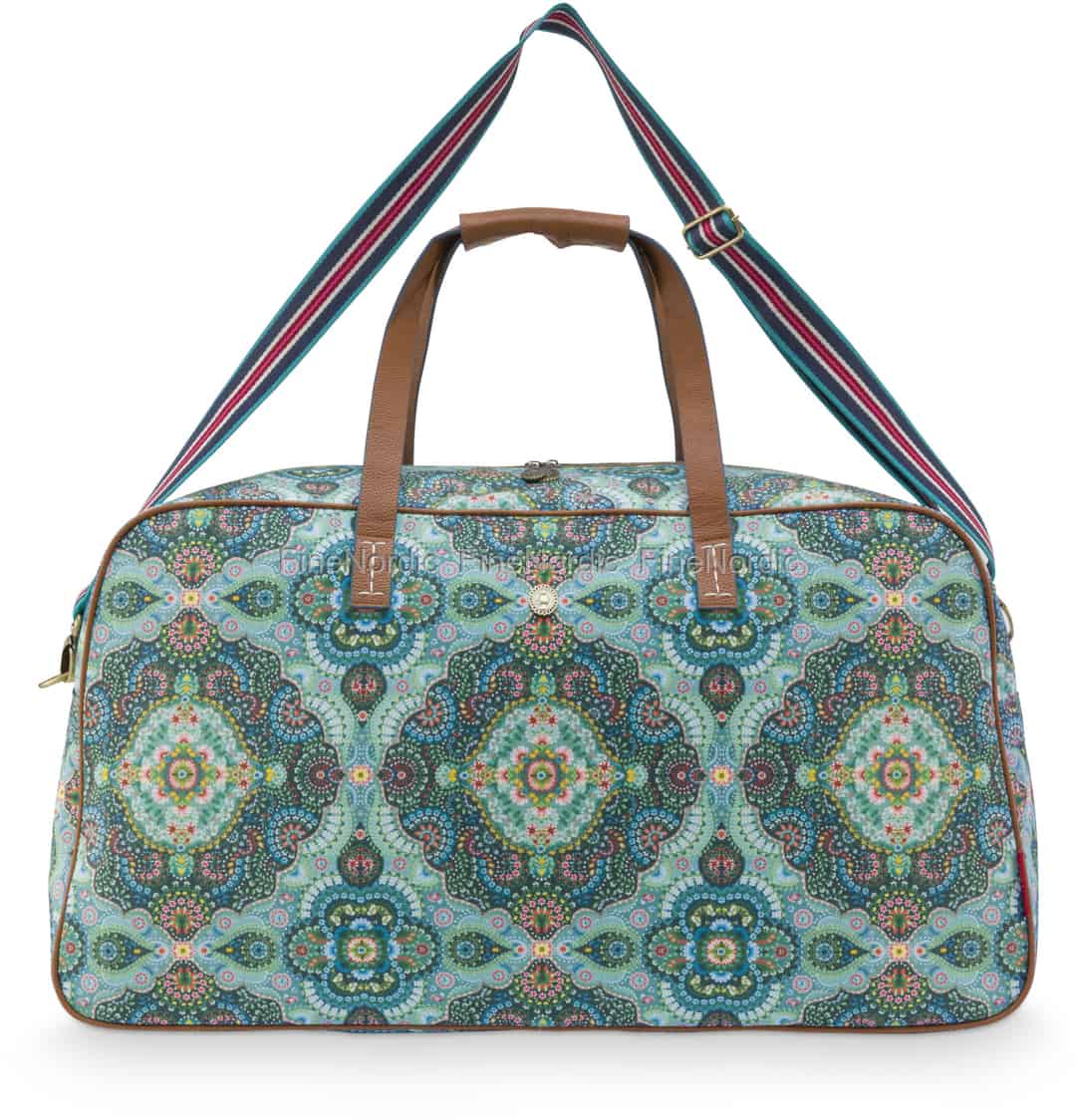 Packen Sie all die Sachen, die Sie für einen Wochenendausflug benötigen, in diese gut aussehende Wochenendtasche von Pip Studio. Die blaue Tasche kann entweder an ihren Kunstledergriffen in der Hand getragen werden oder aber indem Sie den langen, gestreiften Riemen über Ihre Schulter werfen. Die Tasche besteht aus Nylon und Satin und die zusätzlichen Innentaschen ermöglichen es Ihnen, die Dinge, die Sie mitbringen möchten, ordentlich zu verpacken. Die Wochenendtasche ist nicht nur praktisch, sondern sieht aufgrund ihres hübschen Blumenmusters und der harmonisierenden Farben auch einfach super aus. Sie können diese Tasche mit den anderen blauen Moon Delight Taschen und Beuteln von Pip Studio kombinieren. Eine schöne Auswahl an Taschen, Beuteln und Etuis aus dieser beliebten Kollektion finden Sie in unserem Webshop.