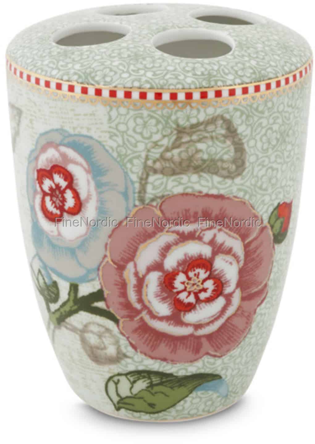 Wenn sie nicht in Benutz sind, dann können Sie Ihre Zahnbürsten in diesem schönen grünen Zahnbürstenhalter von Pip Studio aufbewahren. Der Halter bietet Platz für vier Zahnbürsten und ist aus hochwertigem Porzellan gefertigt. Dieser Halter gehört zur Spring to Life Kollektion von Pip Studio und ist mit bunten Blumen und goldfarbenen Akzenten verziert. Sie können auch den berühmten rot-weißen Pip Streifen mit goldenen Akzenten auf dem Halter entdecken. Kombinieren Sie ihn mit dem passenden Becher und Seifenspender aus der Spring to Life Green Kollektion. Sie finden es auch als 3-teiliges Set in unserem Webshop.