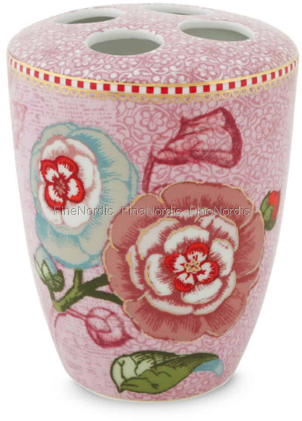 Dieser pinkfarbene Zahnbürstenhalter ist Teil der Spring to Life Kollektion und aus hochwertigem Porzellan gefertigt. Der Pip Studio Halter bietet Platz für 4 Zahnbürsten und ist mit bunten Blumen und goldfarbenen Akzenten geschmückt. Pip Studio Fans erkennen ihn sofort als Pip Produkt, da auf ihm die markante rot-weiß gestreifte Pipe Linie mit goldfarbenen Details zu sehen ist. Sie können ihn gut mit den anderen Spring to Life Pink Badezimmeraccessoires von Pip Studio kombinieren.