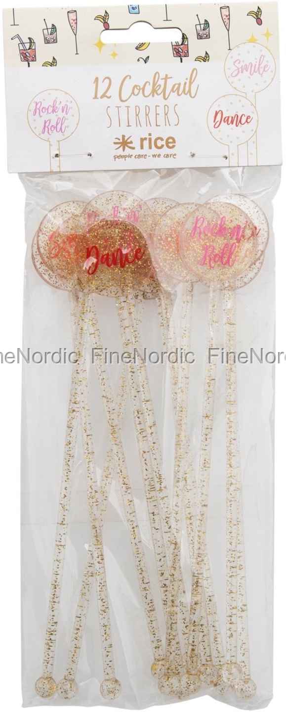 Rice 12 Cocktailrührer in Goldglitter - verschiedenen Wörtern