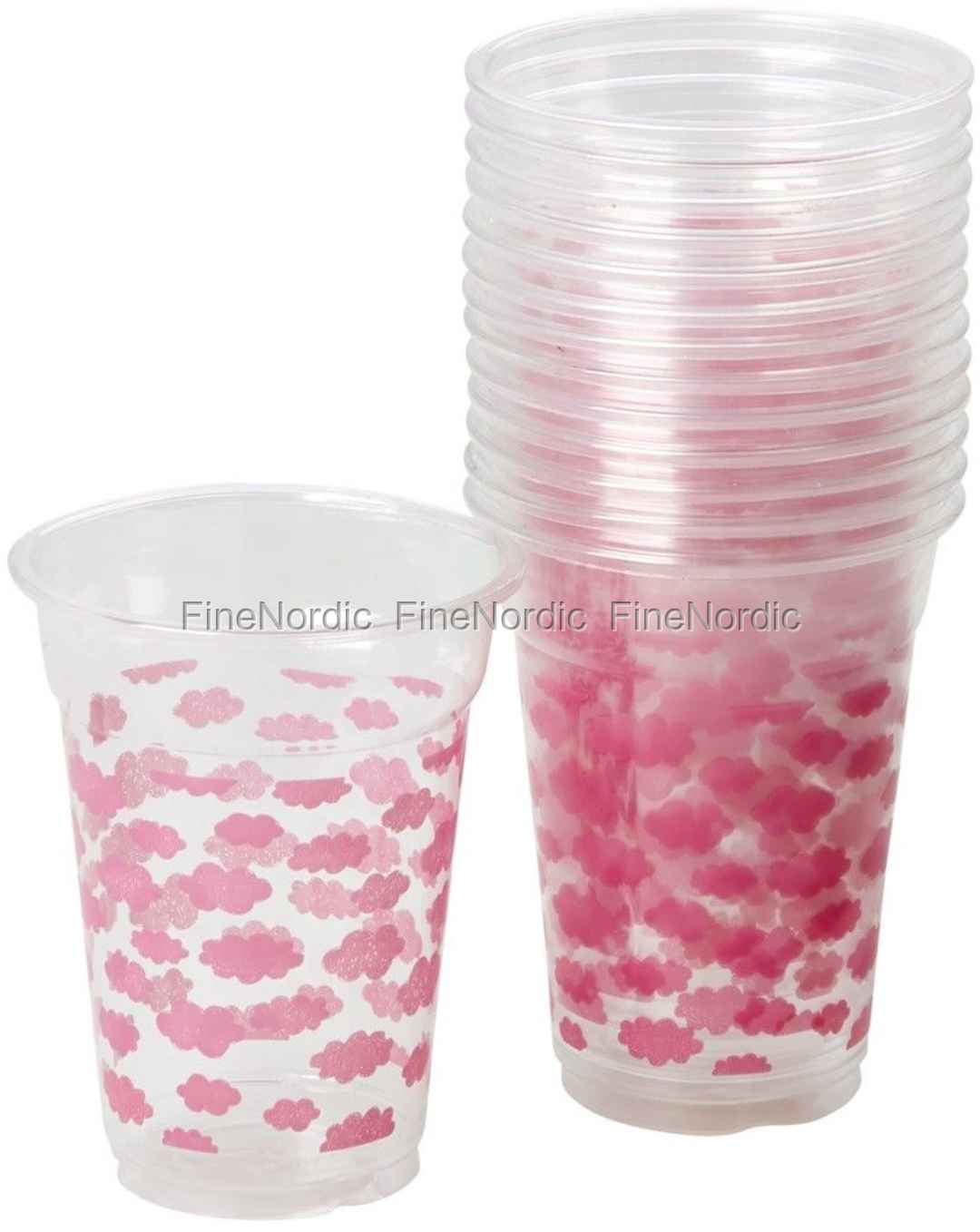24 Einweg-Plastikbecher mit Wolkendruck - Pink, von Rice.