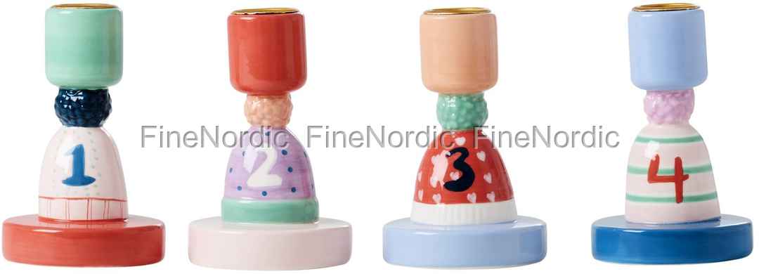 Rices vier Beanie Adventskerzenhalter aus Keramik sind perfekt für jemanden, der seine Adventskerzen auf eine etwas unkonventionelle Art und Weise zur Schau stellen möchte. Jeder Kerzenhalter ist in einer anderen Farbe und mit einem anderen Muster bemalt und die Nummern 1 bis 4 sind darauf geschrieben. Kerzen mit einem Durchmesser von 2 cm passen in diese Halter und Sie können die Kerzenhalter allein hinstellen oder einige Tannenzapfen, Nüsse oder Kiefernzweige hinzulegen. Stellen Sie sie auf den Tisch, auf die Anrichte, auf die Fensterbank oder wo auch immer Sie sie am besten sehen können, so dass Sie das Kerzenlicht genießen können. Dieses 4-teilige Adventskerzenhalter Set von Rice ist auch ein schönes Weihnachtsgeschenk für einen lieben Freund oder ein Familienmitglied.