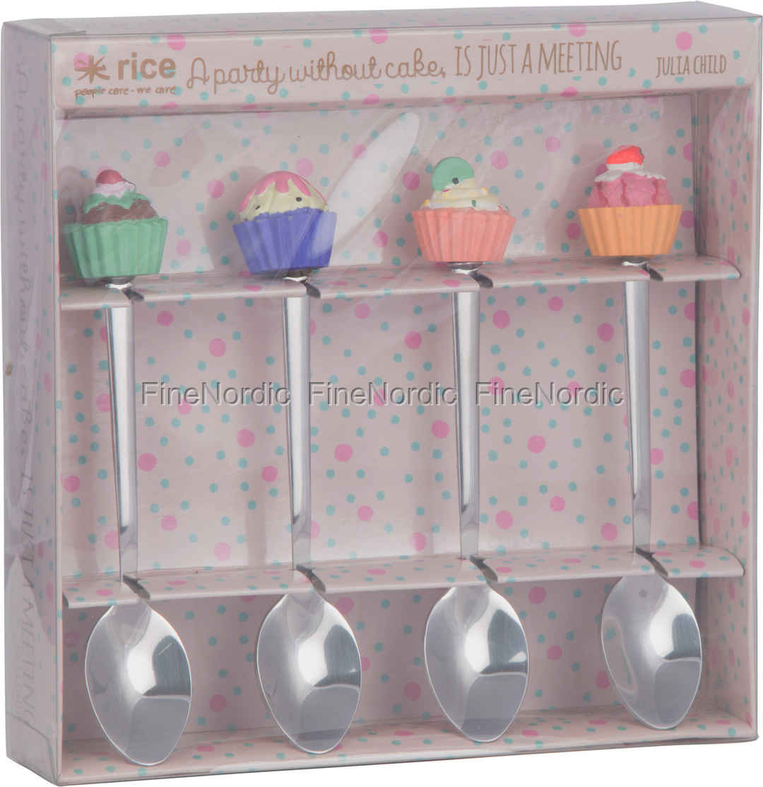 4 Teelöffel mit Resin Cup Cake Dekoration, von RICE.