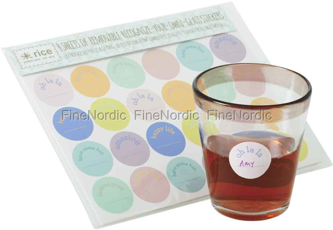 Sie kennen das bestimmt: Man ist auf einer Party mit vielen Leuten, lässt kurz sein Glas auf dem Tisch stehen und denkt dann: Ist das hier mein Glas? Oder das? Das kann auf Ihrem Fest nicht passieren, dank der praktischen und witzigen Glasmarkierungsaufkleber von Rice. Sie kommen in einem 24er Set, sind rund und verschiedenfarbig und haben lustige, kleine Bemerkungen wie: Oh la la, have some fun, happy life und mehr auf ihnen stehen. Unter den Bemerkungen ist jeweils eine Linie eingezeichnet, wo man seinen Namen draufschreiben kann. Dann einfach den Sticker auf das Glas kleben und voilà, schon sind Verwechslungen nicht mehr möglich. Ganz schön clever, Rice!