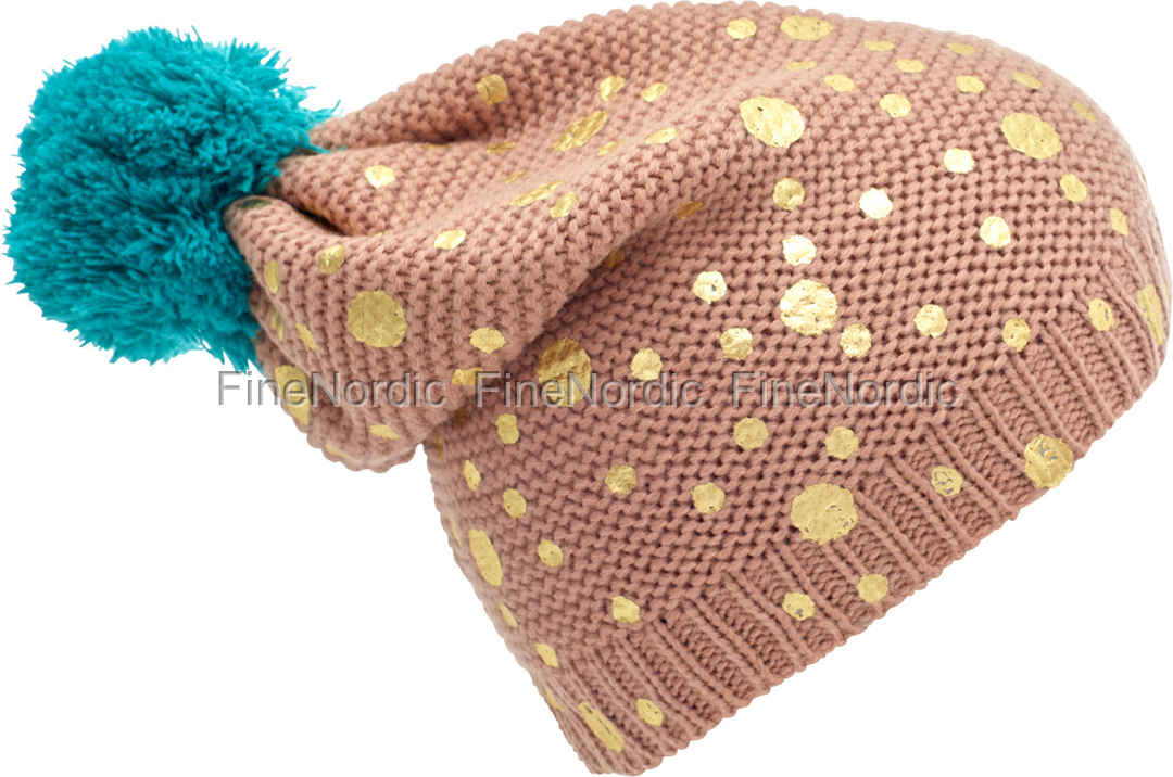 Beanie in Nougat Brown - Gold Dots and Big Pom Pom, von RICE.