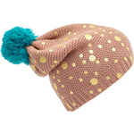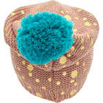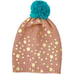 Rice Beanie in Nougat Brown - Gold Dots and Big Pom Pom