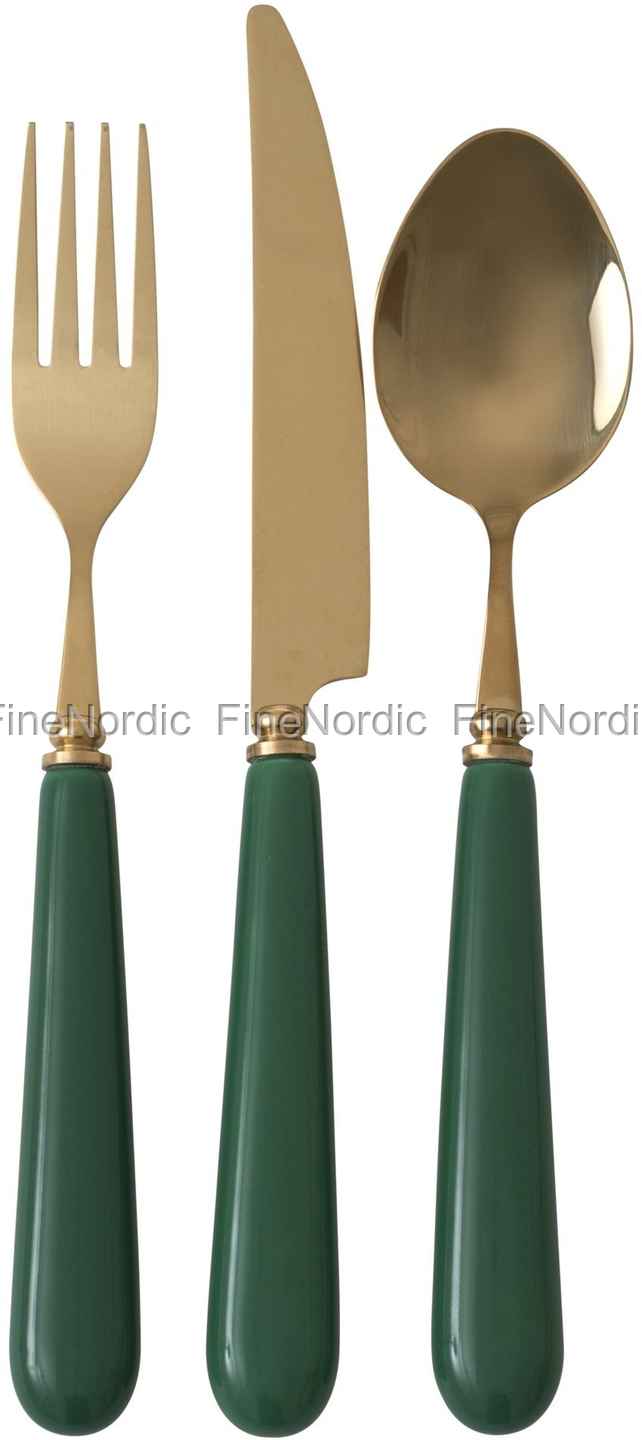 Rice Besteck in Messing Look - dunkelgrünem Keramikgriff - 3er Set