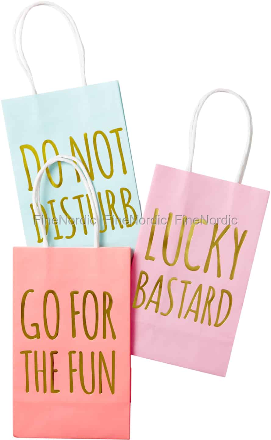 Machen Sie das Geschenke Überreichen doch mal zu einem witzigen Ereignis, indem Sie das Geschenk in einem dieser coolen Geschenktüten von Rice präsentieren. Die Papiertüten kommen in den Farben Neon Koralle, Mint und Pink und sie sind mit lustigen, goldfarbenen Sprüchen bedruckt. Die Tüten zeichnen sich nicht nur durch ihre leuchtenden Farben und dem Goldprint aus, sondern sorgen auch dafür, dass dank Ihnen das Einpacken ganz schnell und einfach über die Bühne geht. Legen Sie einfach das Geschenk hinein und schon kann es dem glücklichen Empfänger präsentiert werden. Wenn Sie es noch etwas schicker mögen, dann können Sie den Griffen der Geschenktüte ein hübsches Band oder vielleicht einen Geschenkanhänger hinzufügen. Dieses 3-teilige Geschenktütenset ist auch in einer kleineren Größe erhältlich.