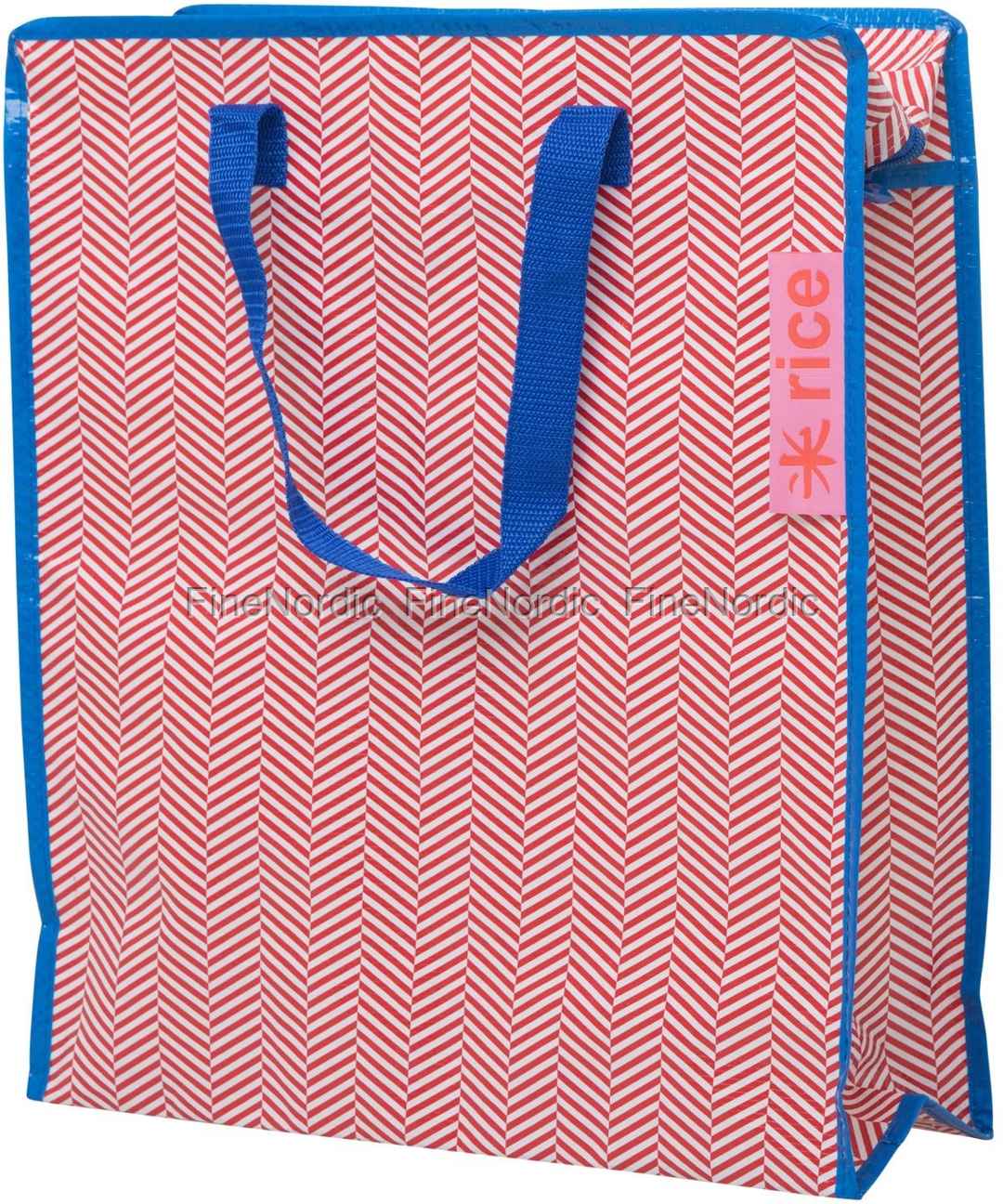 Rice gewebte PP Tasche - Reißverschluss Rot Sailor Stripe - blauen Details - Klein